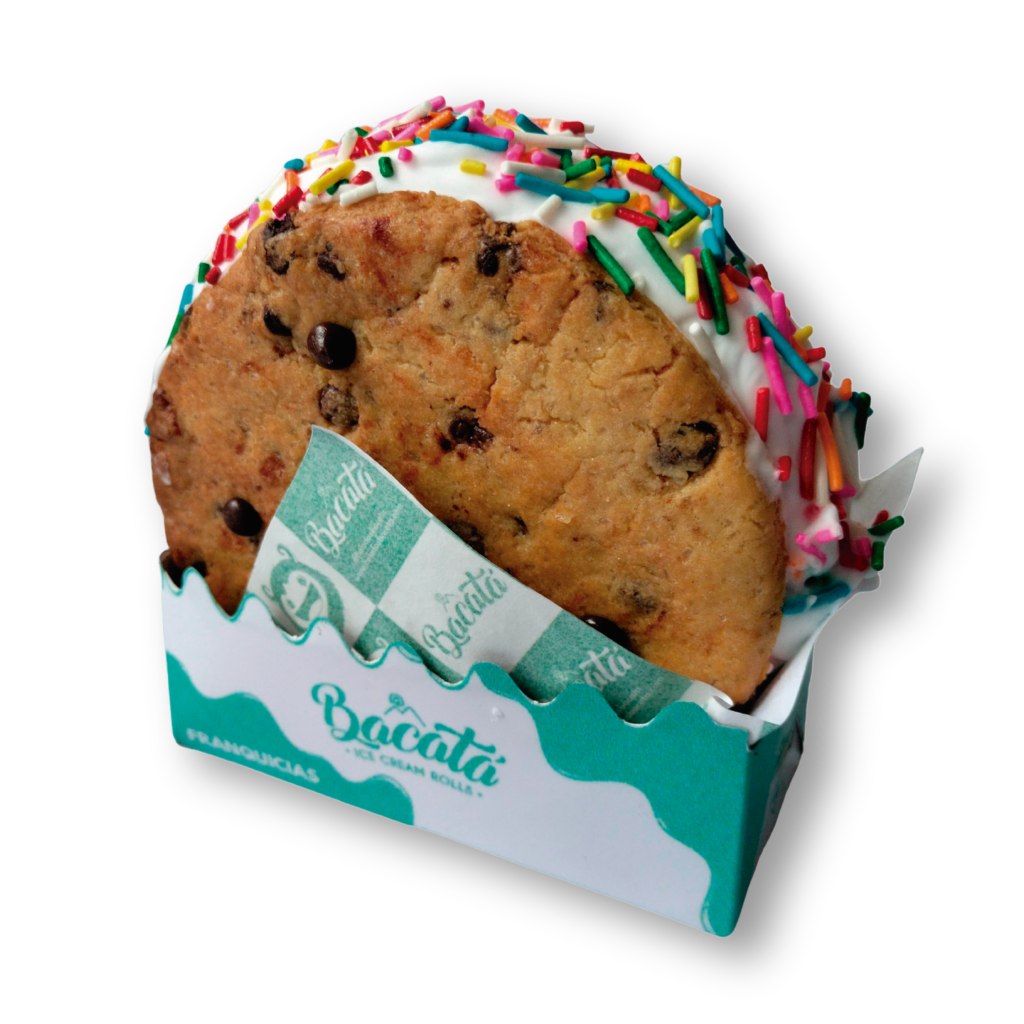 dos galletas Artesanales con chispas de chocolate abrazan un cremoso helado desbordante, coronado con una explosión de chispas de colores. Una experiencia crujiente, suave y adictiva en cada mordida. ¿Te atreves a probar tu nueva obsesión?